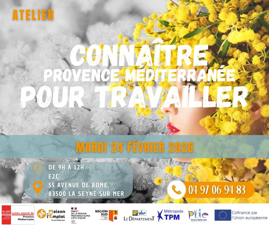 L'atelier “Connaître Provence Méditerranée pour travailler”, organisé par la Maison de l’Emploi Provence Méditerranée se déroulera :